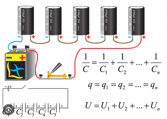 1 ๐ถ ๐‘’ ๐‘ž = 1 ๐ถ 1 + 1 ๐ถ 2 + 1 ๐ถ 3 + โ€ฆ C eq โ€‹